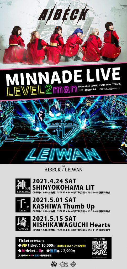 AIBECK X LEIWAN 2MAN神奈川・千葉・埼玉 2021年4月5日 投稿者: 宮田 貴史 【AIBECK X LEIWAN 2MAN神奈川・千葉・埼玉】 MINNADE LIVE-LEVEL… 続きを読む