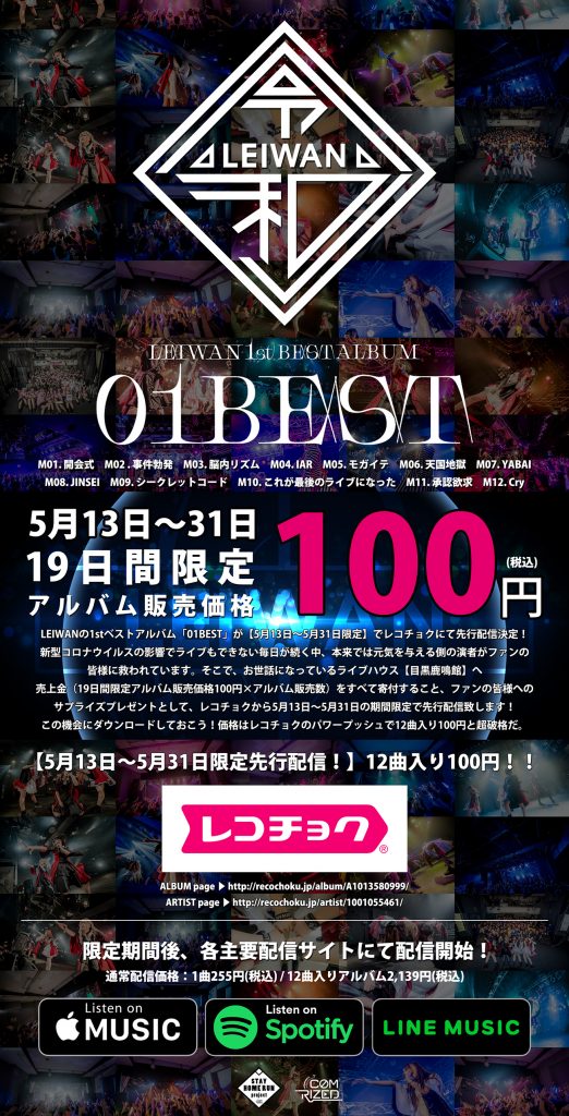 LEIWAN-1stベストアルバム「01BEST」 2020年5月1日2020年5月1日 投稿者: 宮田 貴史 LEIWANの1stベストアルバム「01BEST」が 5月13日〜5月31日 レコチョク限定先行配信… 続きを読む