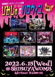 出演:秘密結社ニルヴァージュ∀/バブルビデガム!!/オグメンタル/EMPATHY/RASCAL CLAN/ONE KILL/LEIWAN/プランクスターズ
