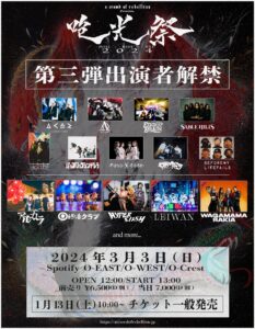 - a crowd of rebellion/EGG BRAIN/SABLE HILLS/バックドロップシンデレラ/ヒステリックパニック/Hakubi/PassCode/ΛrlequiΩ/BEFORE MY LIFE FAILS/アルカラ/終活クラブ/我儘ラキア/HYPER SLASH/LEIWAN