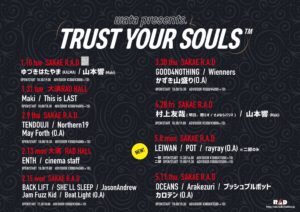 wata presents TRUST YOUR SOULS 2023年3月10日 投稿者: 宮田 貴史 宮田 貴史 コメントがまだありません Calendar チケット カレンダーに追加 Timelyカレンダーに追加 Googleに追加 Outlookに追加 Appleカレンダーに追加 その他のカレンダーに追加 Export to XML いつ: 2023年5月8日 @ 3:30 PM 2023-05-08T15:30:00+09:00 2023-05-08T15:45:00+09:00 どこで: 栄R.A.D 5/8(月) wata presents TRUST YOUR SOULS LEIWAN POT rayray(O.A) ※二部のみ <一部> OPEN/START 15:30/16:00 ADV/DODR ¥1000/¥1500(D別) <二部> OPEN/START 19:00/19:30 ADV/DODR ¥3000/¥3500(D別) 投稿ナビゲーション 3/16(木)【WAKAGENOITARI FES】@clubasia3月28日(火) 【超無銭COMCOMライブ-sp-】 @目黒鹿鳴館